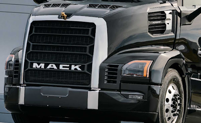 "Hemos tomado el icónico bulldog de Mack y lo hemos reubicado de forma más prominente en el capó", dijo Lukas Yates , diseñador jefe experto de Mack Trucks, quien diseñó el exterior del Pioneer. "En lugar de estar sobre un pedestal, el adorno del bulldog en el capó ahora está integrado con el diseño del camión, flanqueado por tomas de aire que ayudan a gestionar el flujo de aire bajo el capó, convirtiéndolo en una parte integral del rendimiento del camión, en lugar de ser solo un emblema".