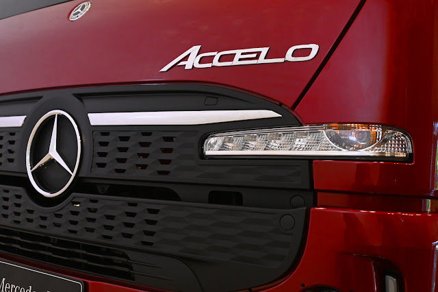 O novo e moderno design reúne detalhes futuristas e clássicos. O Accelo é o primeiro caminhão com uma identidade visual que segue as linhas do novo Actros L e do caminhão elétrico eActros, que foram atrações da Mercedes-Benz no salão IAA deste ano na Alemanha.